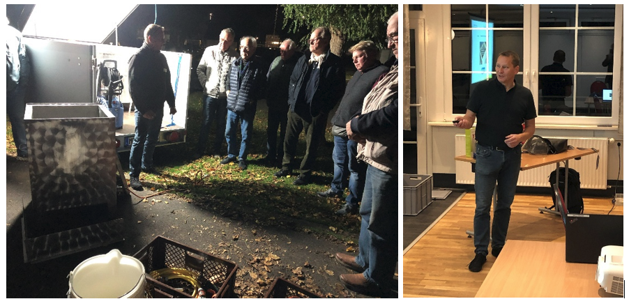 Die Teilnehmer der KIV-Herbstveranstaltung informierten sich über aktuelle Fragen der Bienengesundheit. Im Vordergrund stand der praktische Einsatz eines Bienengesundheits- (BIG-) Mobils. Um einem wichtigen Ziel des Fachbereiches für Bienengesundheit beim Aufgabengebiet Bienenkunde der Landwirtschaftskammer NRW näherzukommen, nämlich im Tierseuchenfall handlungsfähig zu sein, wurde eigens eine Vollzeitstelle besetzt. Auf Anforderung bringt der Fachberater die Gerätschaften an den Einsatzort. Aber auch für alle weiteren Fragen rund um die Bienengesundheit steht Wolfgang Take allen Imkern zur Verfügung.
